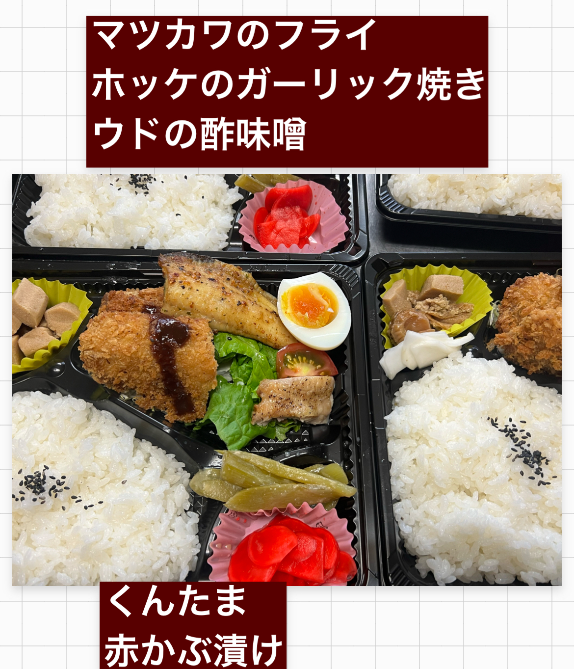お魚系のボリュームがあって魅力あるお弁当だと思いますけど、これにはちゃんと訳があります