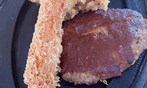 大きなエビフライとハンバーグ、