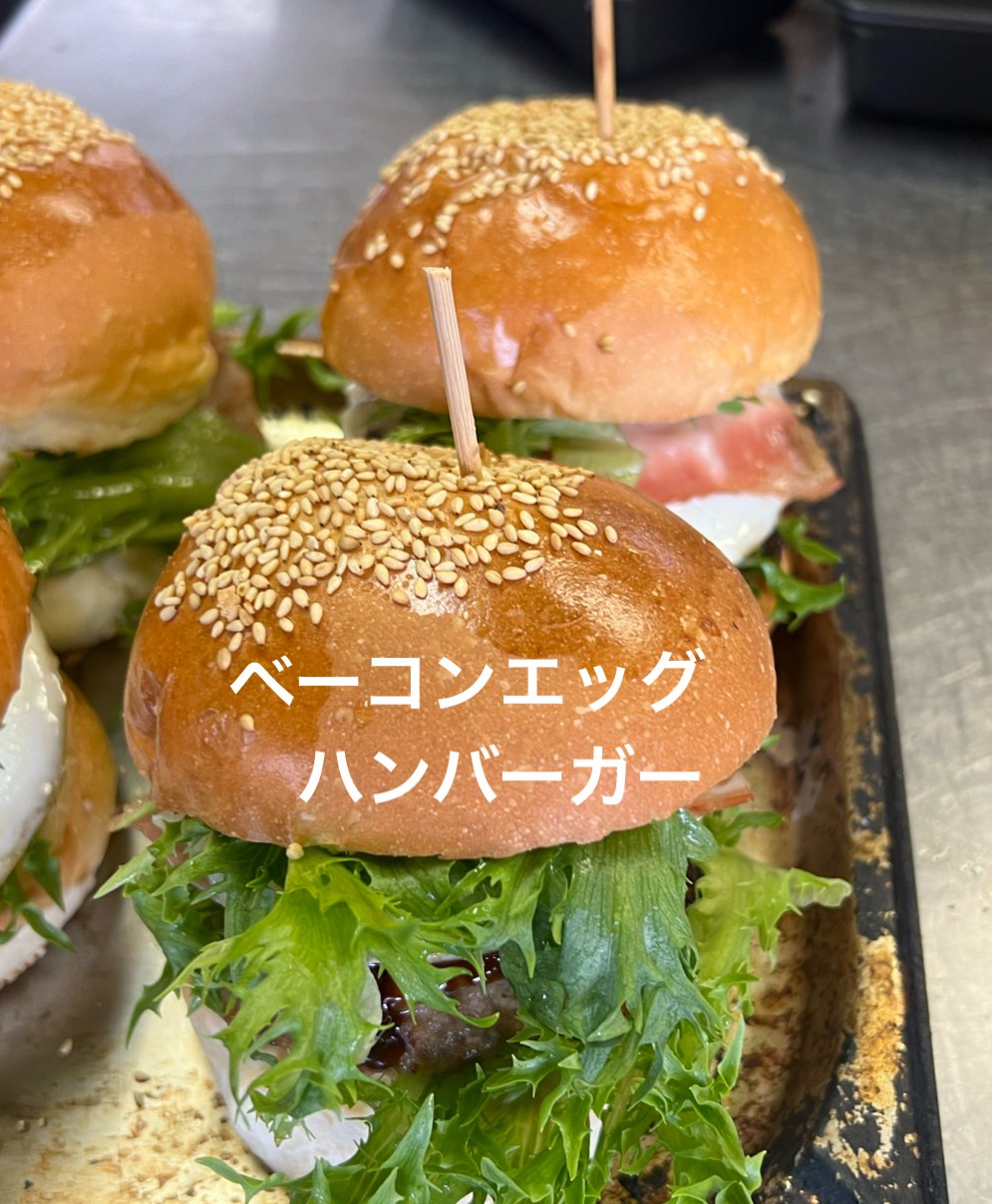 はい、本日はお弁当の他にもベーコンエッグバーガーのご注文が入っておりましたので、早速作らせていただきましたょ🍔
