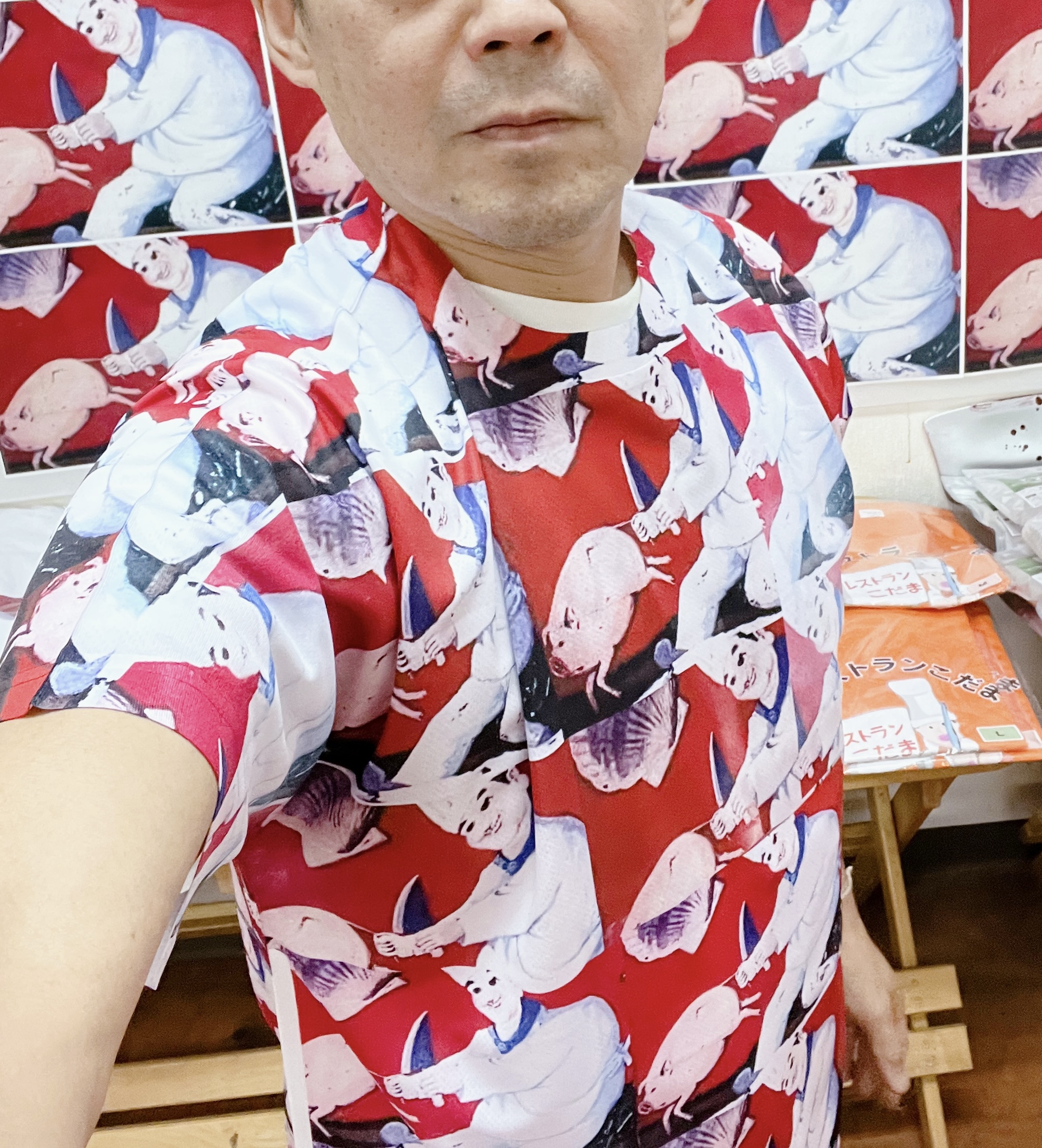 豚とコックシャツで