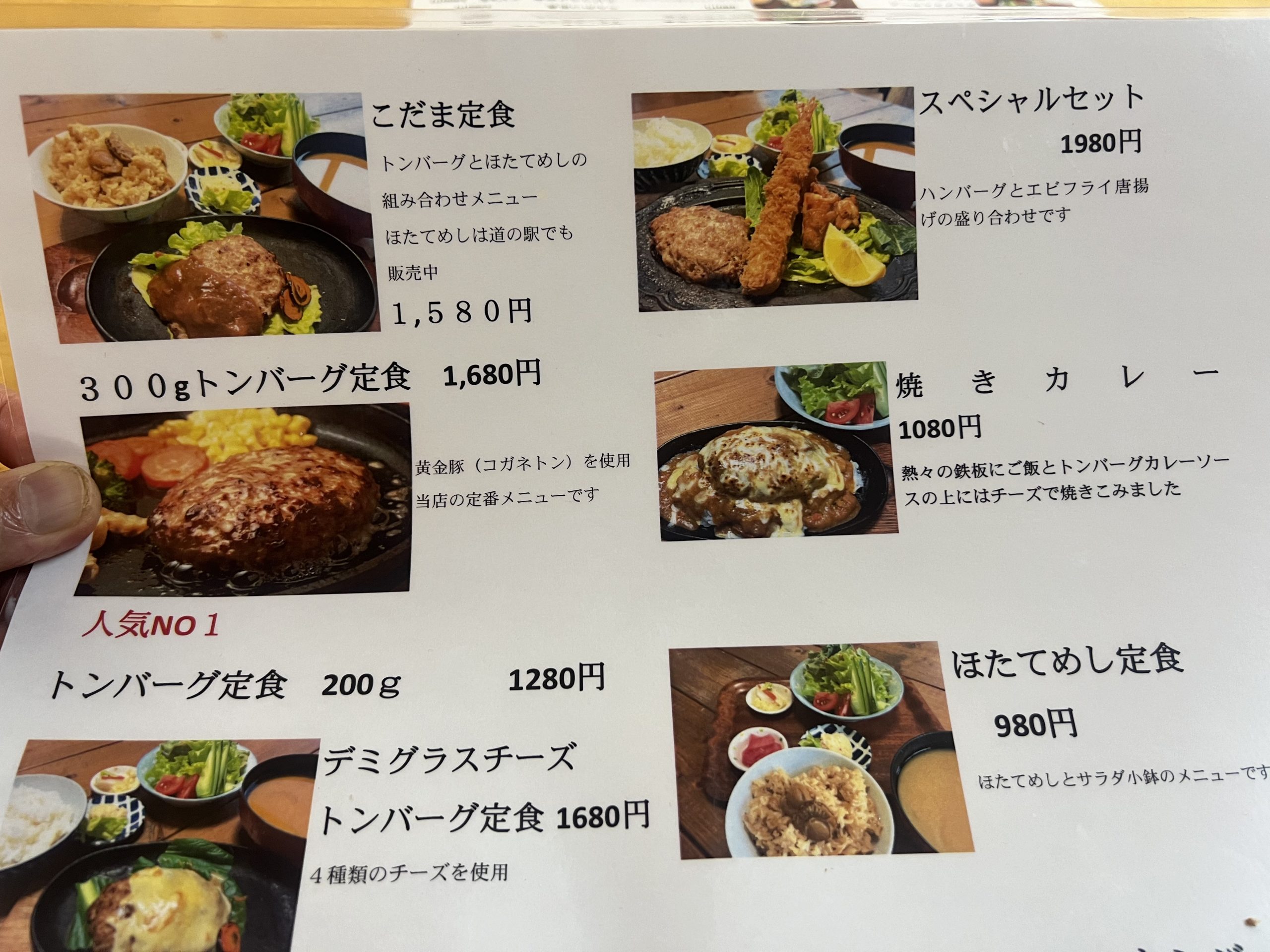 次のメニューはハンバーグとトンテキこちらはお肉をいっぱい食べたい方にぴったりのメニューです
