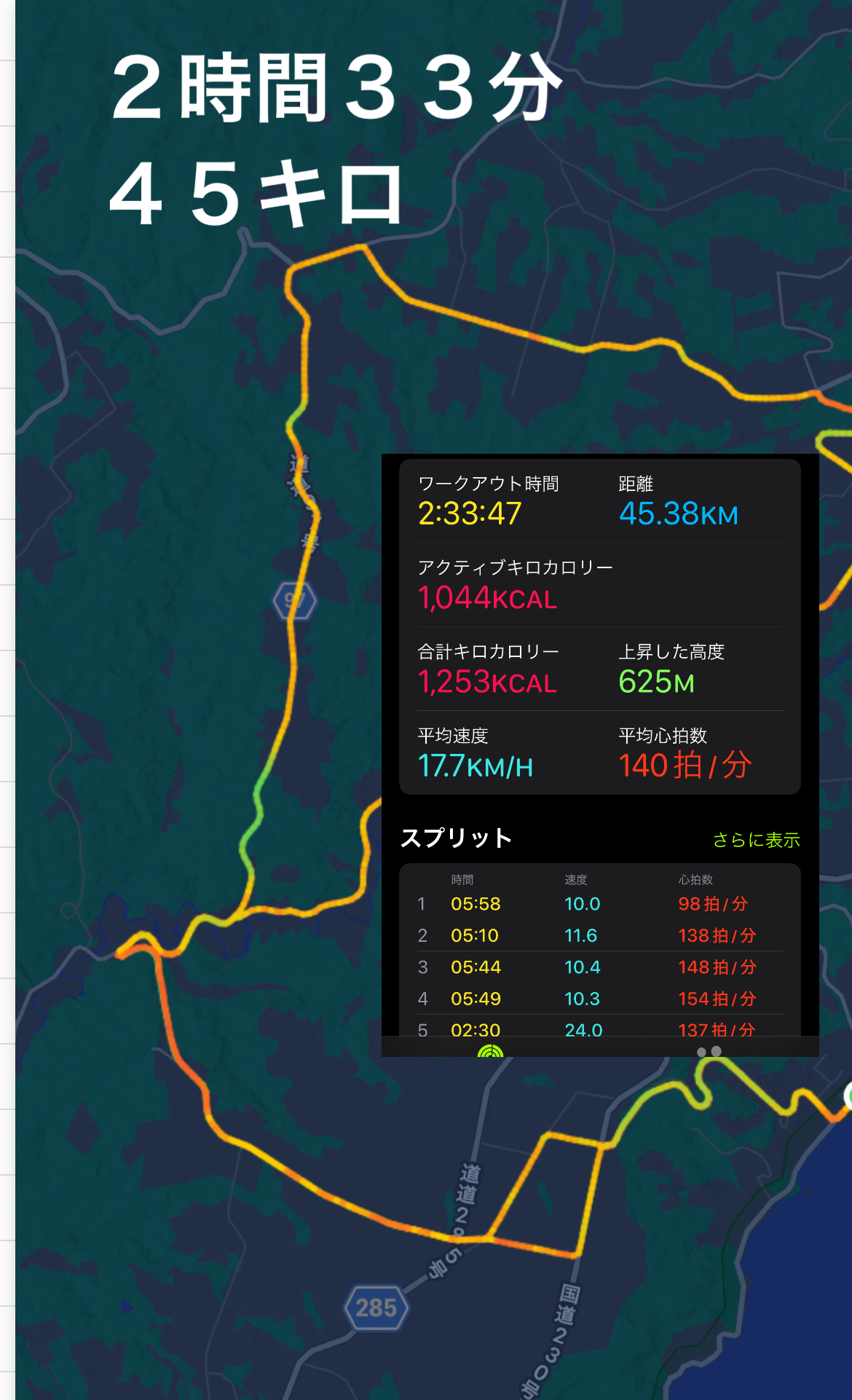 後は坂道をどれだけ克服するか練習あるのみ。