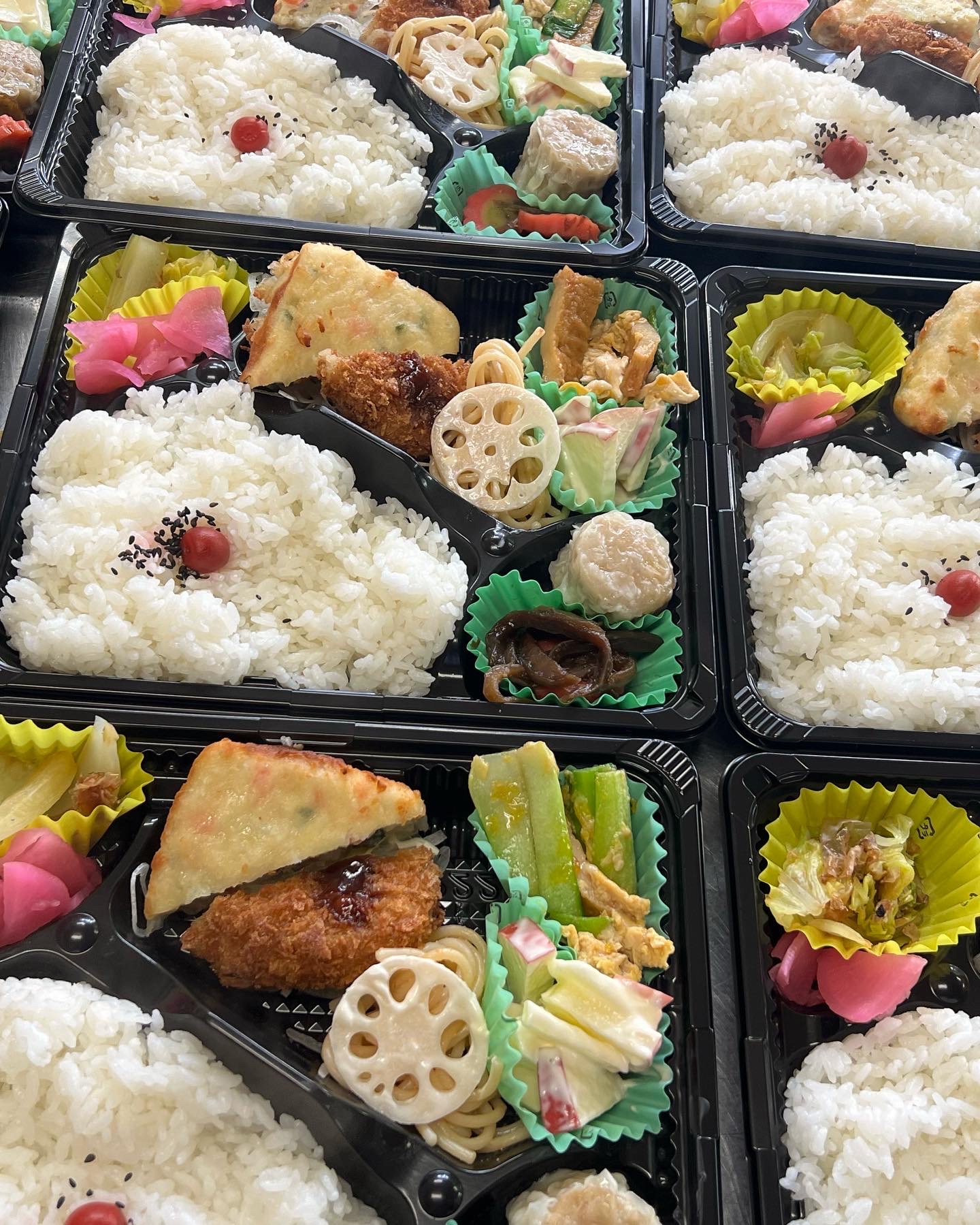 はい 本日の弁当は、コロッケ、豆腐のステーキ、シューマイうまい😋 たらこスパ、蓮根マヨ和え