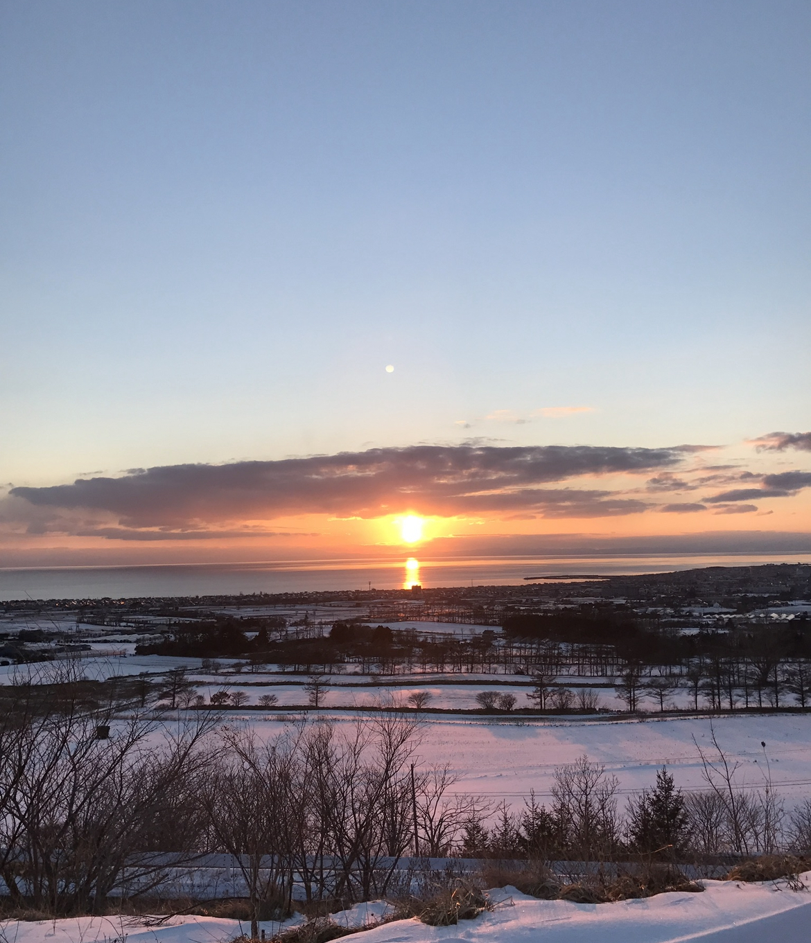 夕焼け空に雲がいっぱいあり、