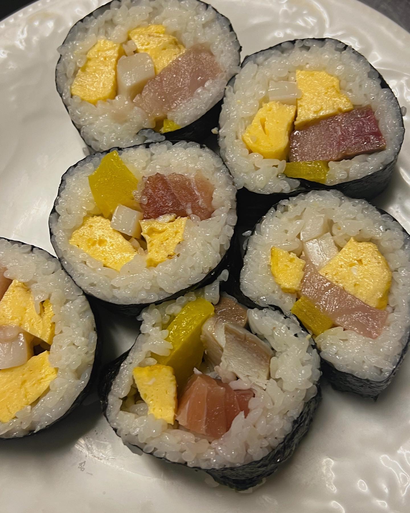 海苔で巻いて海鮮巻きにしましたょ