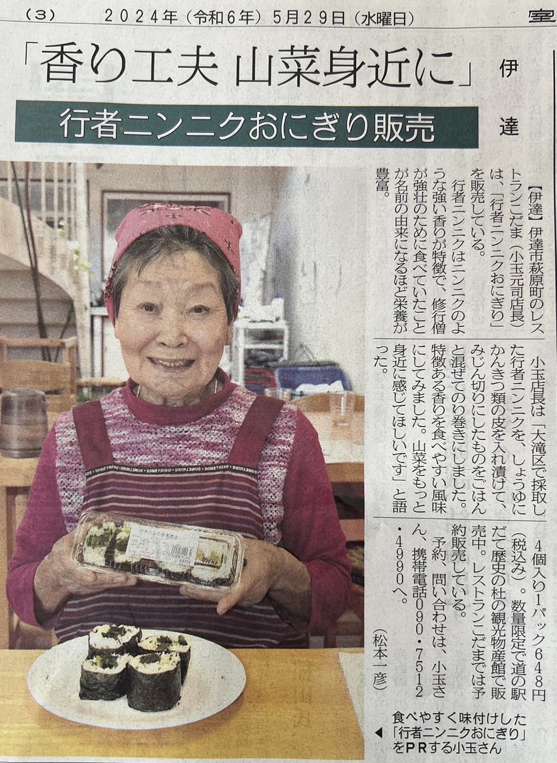 行者にんにく 室蘭民報掲載