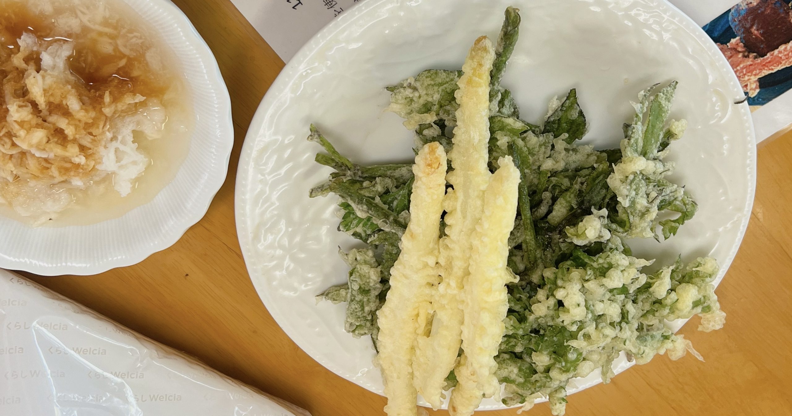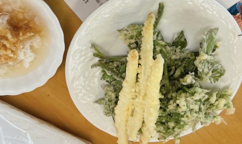 家の周りにあった よもぎとウドの天ぷらです