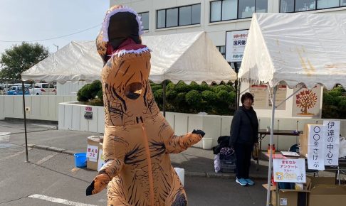 ブログあいあいフェスにて ティラノサウルスデビュー🦖 ティラノサウルスは人集めの手段でして 伊達市民の困りごとアンケート調査 と 来年のティラノサウルスレースの公言 この2つ なかなか 子どもたちにも人気でしたょ プーさんのリ…