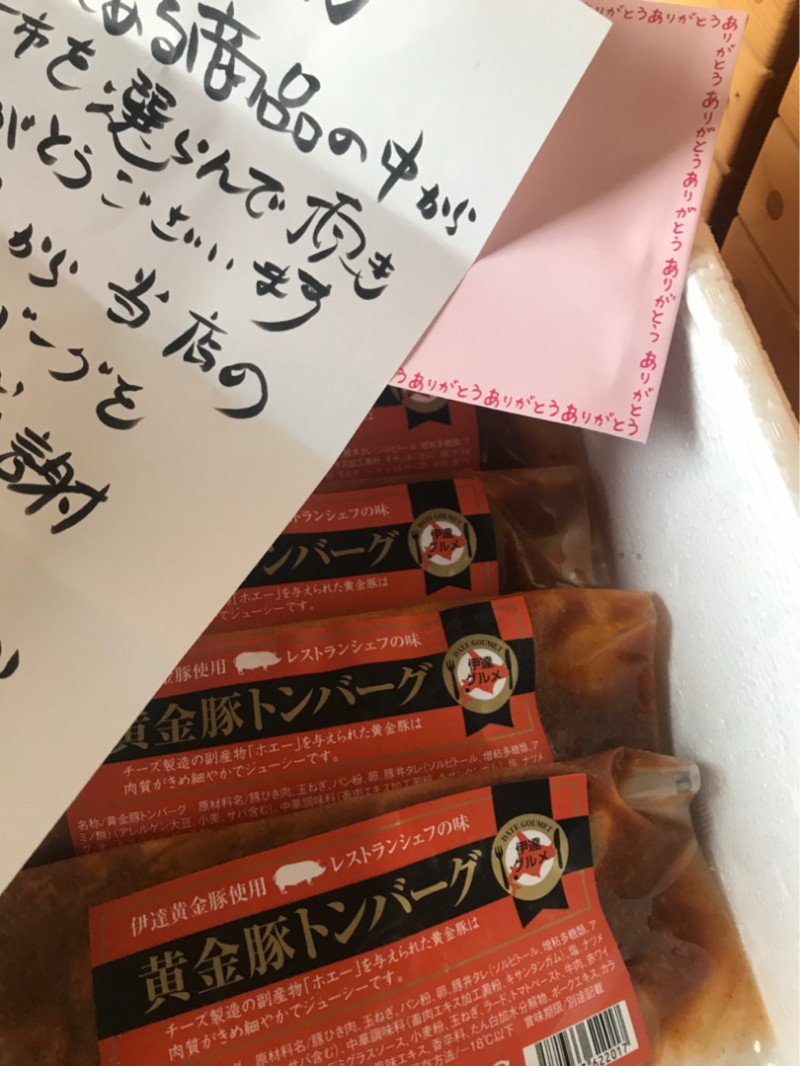 黄金豚ハンバーグ、北海道野菜ドレッシング、一度食べて病み付きになり、継続的にご注文いただいております!