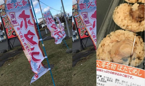 ホタテめしのぼり完成しましたょ 大漁旗っぽいデザインですよ (*≧∀≦*)